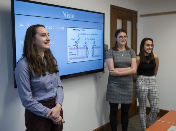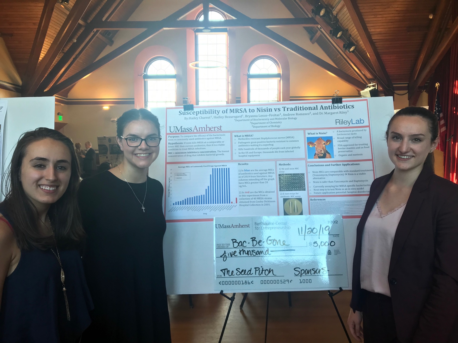 Hadley, Hailey and Bryanna Lexus all meet in the Riley Lab at the University of Massachusetts Amherst. In the Fall of 2019 they all decided to tackle the issue of antibiotic resistance against MRSA. 90,000 people are infected with MRSA every year in the United States alone and 20,000 of those individuals will die. We have entered the post-antibiotic era so alternatives need to be looked at in order to combat this issue. The Riley lab looks at bacteriocins as the alternative to these conventional antibiotics that are no longer working as effectively as we want them to be.