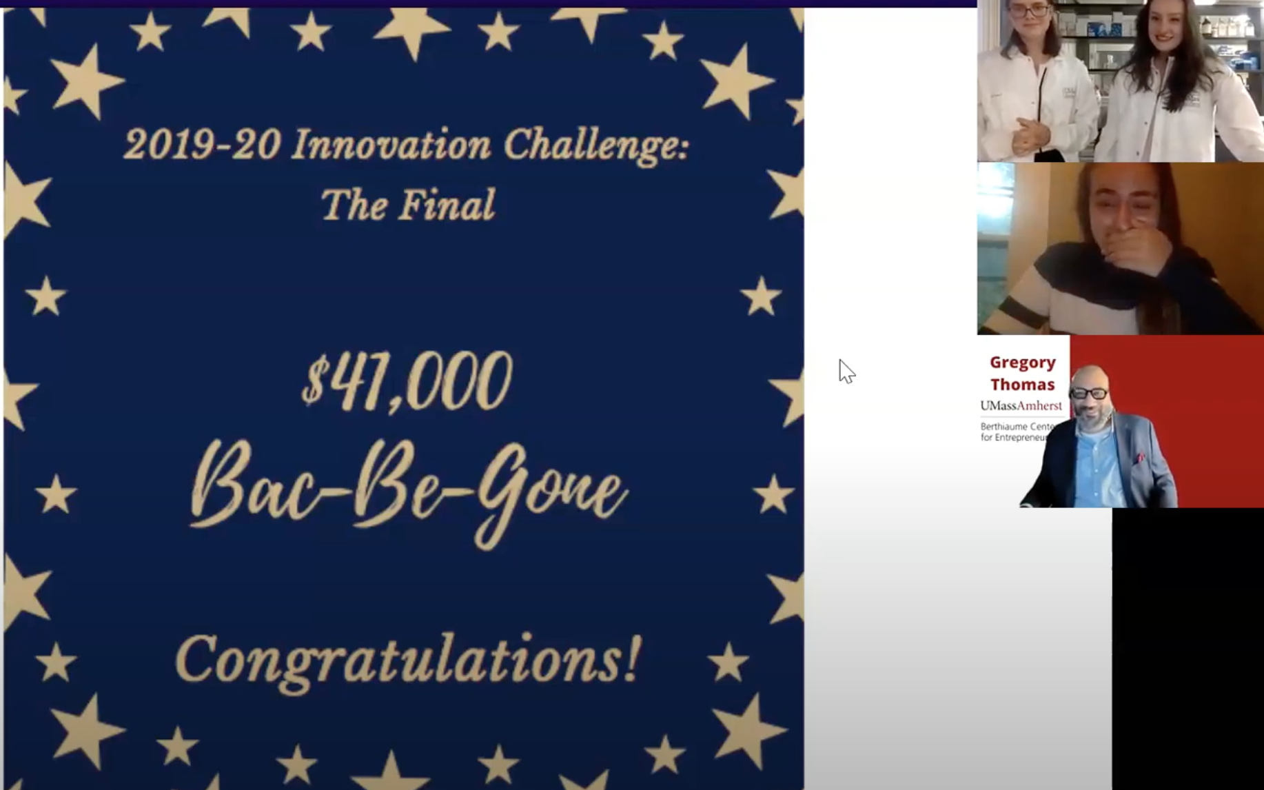 Bac-Be-Gone was able to tie for first prize in the Innovation Competition's "Seed Pitch" and won $5,000 in free-equity funding in November 2019. They continued in the competition in which they moved on from the Semi-Finals (February 2020) to the Finals. They won $1,000 in progressing onto the next round and competed against three other teams.